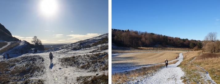 Na dit stevige ontbijt besloten we om het prachtige Holyrood park te bezoeken. Wat een prachtige berg met een spectaculair uitzicht. Je kijkt aan de ene kant uit op de stad, maar aan de andere kant kijk je uit op natuur en de zee. Het uitzicht is echt adembenemend mooi!