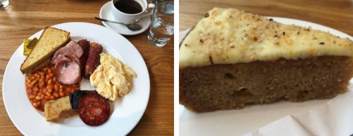 Na dit stevige ontbijt vroeg de bediening aan mij:’Would you like some cake? We have many glutenfree options.’ Ik had zeer stevig ontbeten, maar hoe kon ik hier nou nee tegen zeggen? Er waren heel veel verschillende opties. Uiteindelijk koos ik voor de perzikkaneeltaart. Wat smaakte dit ontzettend goed!