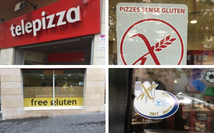 Verder is het ook altijd mogelijk om bij Telepizza te eten, een Spaans pizzaketen (beetje vergelijkbaar met een Domino’s of New York Pizza). Hier is het mogelijk ongeveer 4 soorten glutenvrije pizza’s te bestellen. De Telepizza wordt ook erkend door de Coeliakie vereniging in Spanje. Daarom zie je bij elke Telepizza vestiging een logo aan de voorkant. De glutenvrije pizza’s worden ook apart geserveerd in een dichte doos. Hierdoor ben je er zeker van de pizza niet in aanraking is geweest met gluten. Geen risico op kruisbesmetting dus! Hieronder een paar foto’s om wat meer gevoel te krijgen bij mijn verhaal.