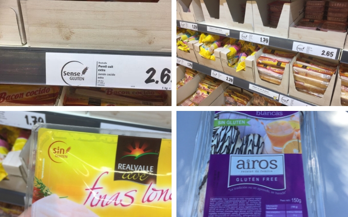 Ten eerste is het in bijna alle supermarkten heel gemakkelijk om glutenvrij eten te vinden. In de ene net wat meer dan de andere. Bij de lidl kwam ik bijvoorbeeld veel meer glutenvrije producten tegen dan ik gewend was in Nederland. Daar zag ik zelfs dat bij de prijskaartjes een logo zichtbaar was van glutenvrij eten. Hier zag je direct of iets “sense gluten” was, oftewel glutenvrij. Hieronder zie je een paar foto’s die ik tijdens mijn vakantie in Spanje gemaakt heb in de lidl. Mocht je dus kamperen of een appartement/vakantiehuis gehuurd hebben dan kan je heel goed terecht bij de Lidl! Dit geldt ook voor andere producten waar geen “sense gluten” of “sin gluten” vermeld staat. Lees de ingrediënten goed en je komt een heel eind.